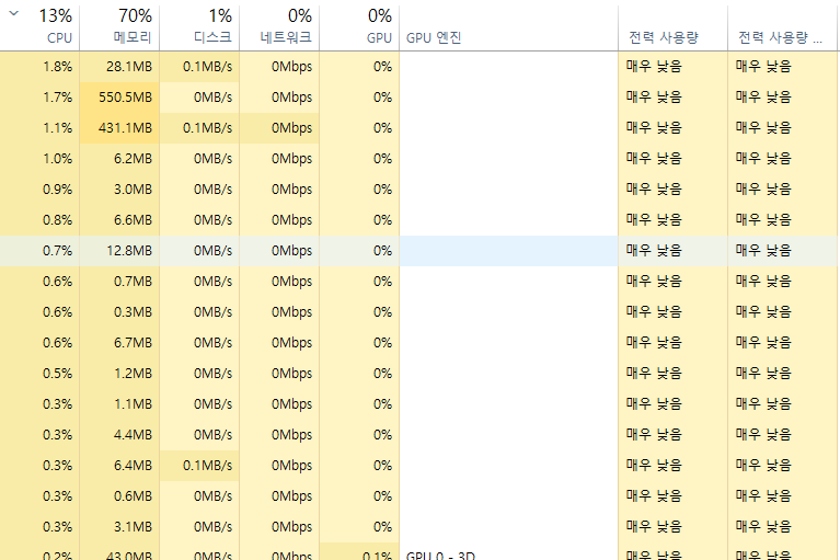 - 백그라운드 프로그램 정리: